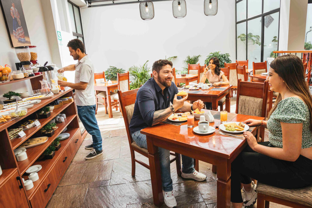 En nuestra cafetería podrá disfrutar los mejores desayunos buffet y atención a habitación, Desayunos preparados con ingredientes locales y frutas frescas.